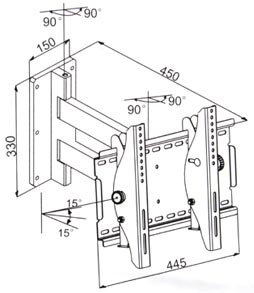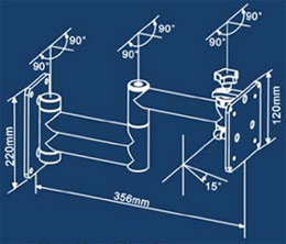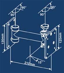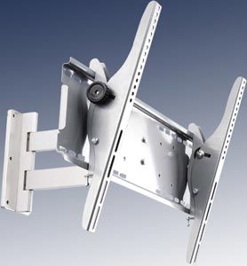 LCD Wandhalterung mit doppeltem Schwenkarm für Plasma-Fernseher von 55-92cm Bildschirmdiagonale. Diese Wandhalterung kann durch Schwenken und Drehen auf den Betrachter an fast jeder Stelle des Raumes ausgerichtet werden und lässt sich bei Nichtbenutzung des Fernsehgerätes platzsparend zur Wand einklappen.
